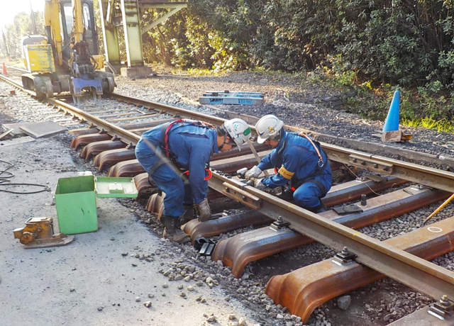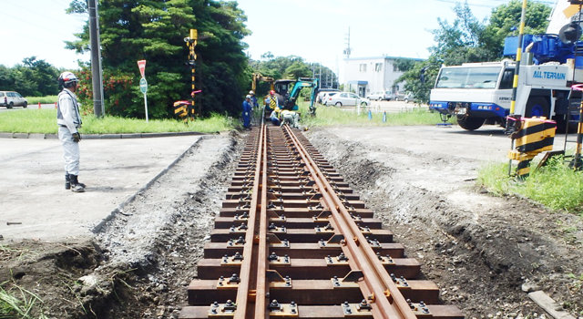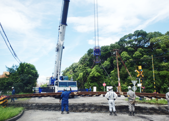 分岐器は、列車の走行時に摩耗や損傷するため、定期的な交換が必要になります。経年劣化した分岐器の分割、または現場組立にて全交換し、安全性と安定性を確保しています。また、耐震補強対策など設備強化工事を実施し、災害に強い鉄道づくりを目指しています。