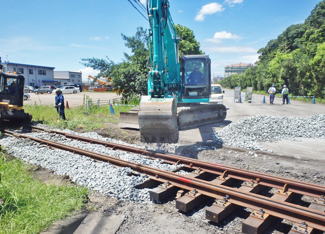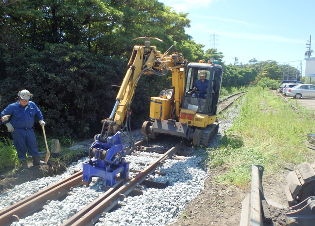 線路の砂利を締め固めるスーパータイタンパー(軌陸式バックホウ+四頭タイタンパーアタッチメント)の導入、更に軌道閉塞可能な個所では、マルチプルタイタンパー(タンピング+レベリング+ライニング)専用大型車両による機械化を積極的に導入することで、作業の効率化と安全の確保を図っています。